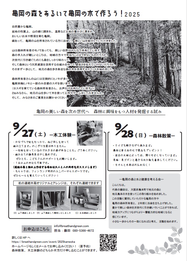 今年も「亀岡の森を歩いて亀岡の木で作ろう!」を開催します。