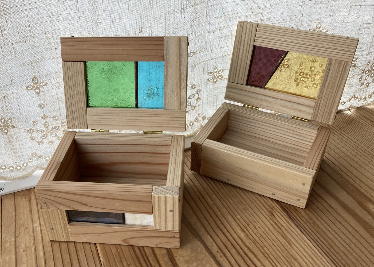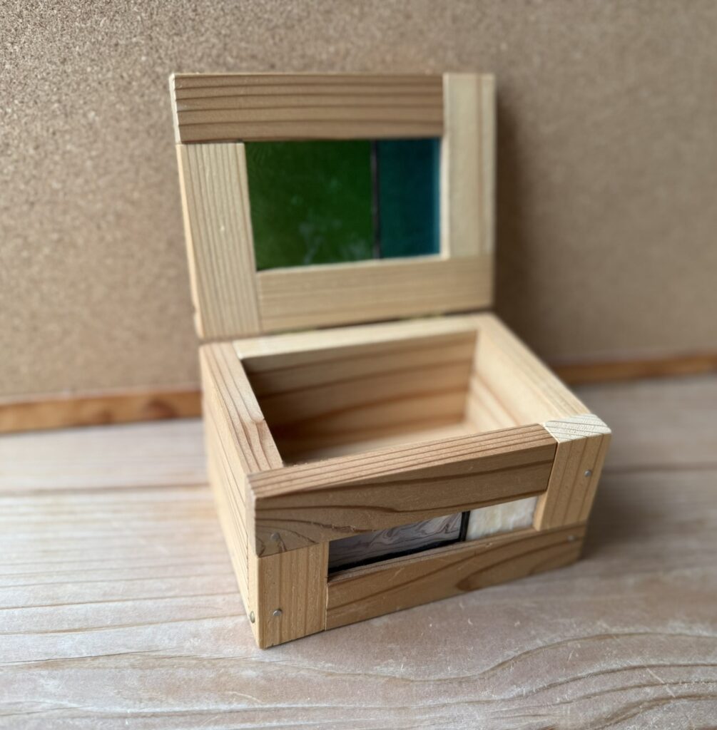 ・ステンドグラス付き木箱長方形ガラス2枚 4,730円(税込)難易度:高 — 島本の木で作ろう!未登場