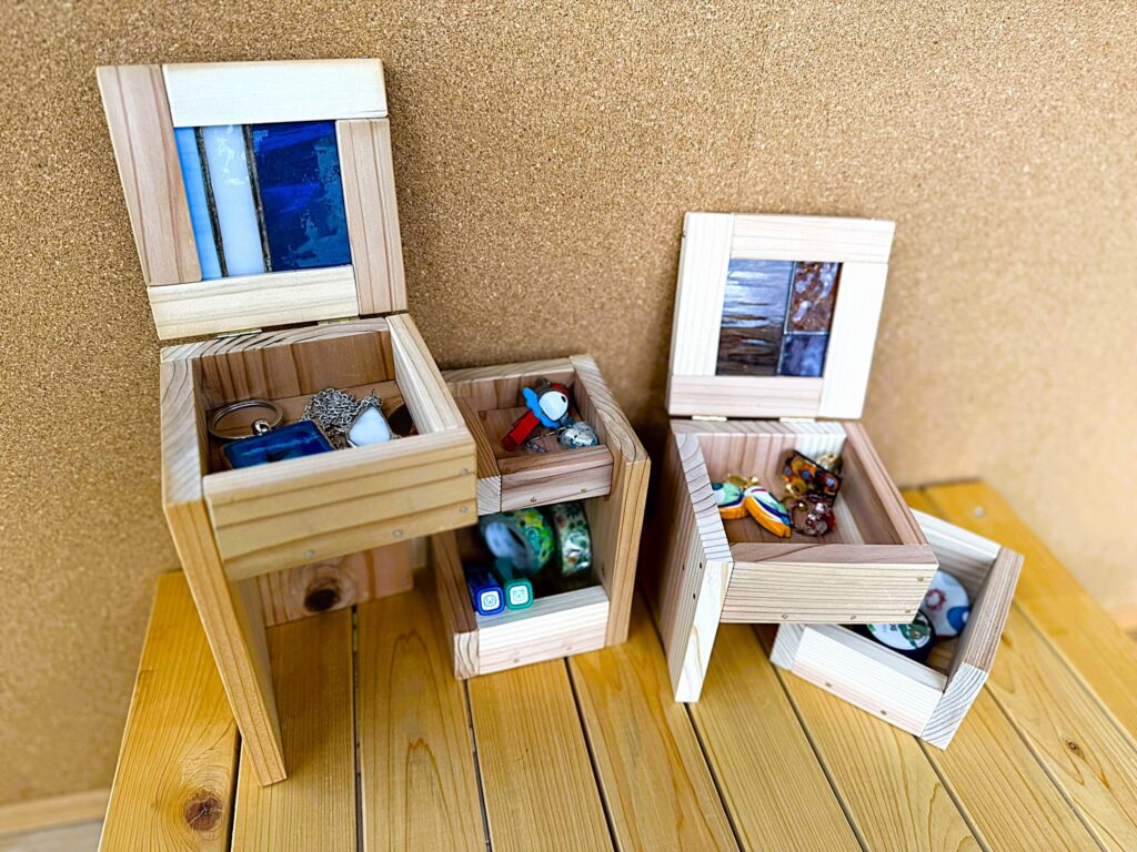 3月29日(日)島本の木で作ろう!隠し箱編木工体験です。キットはステンドグラス付き隠し箱と