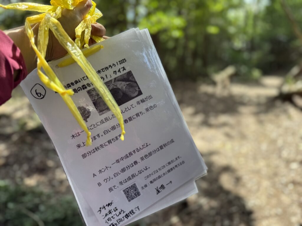 クイズの答え合わせをして、京都のスギ・亀岡のヒノキで作ったお土産をお渡しして、