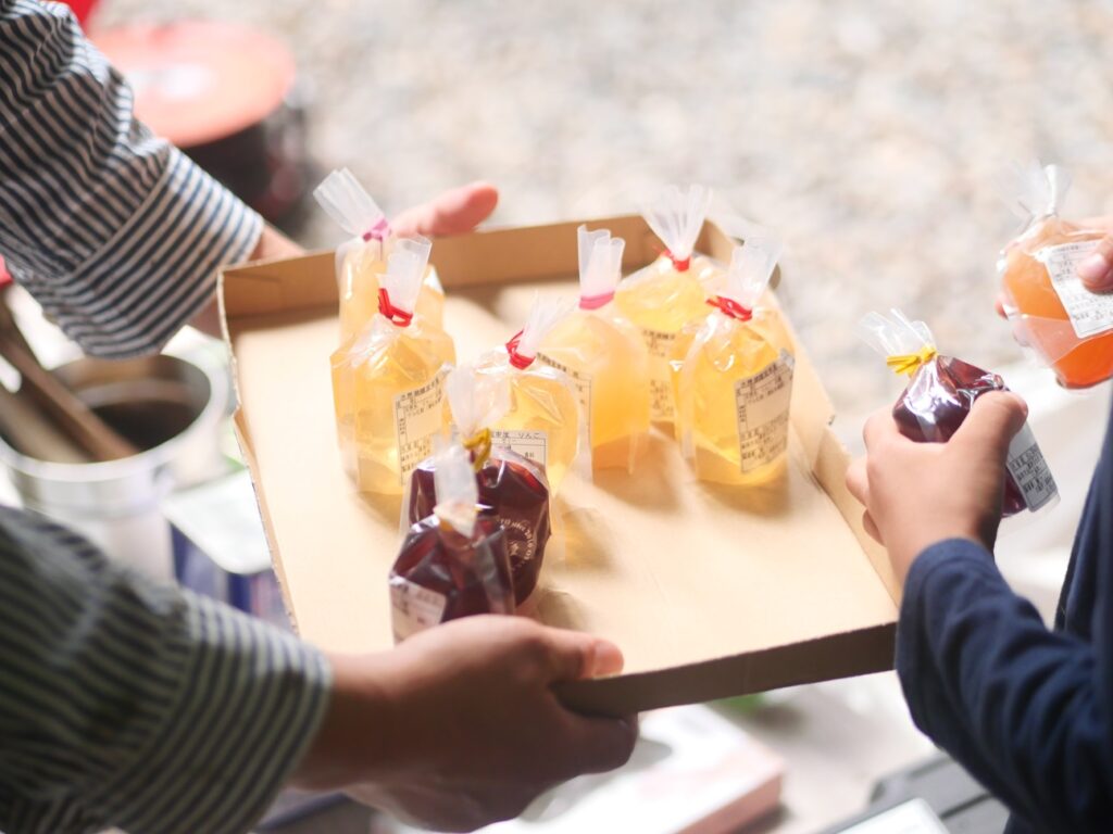 スイーツをいただいてもらいながら、伐採で生じるあまり使われない細い丸太部分を使って何を作ってみたいか聞いてみました。