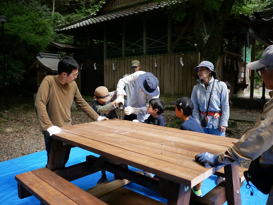 みなさまのおかげで、とっても素晴らしいテーブルベンチが出来上がりました。