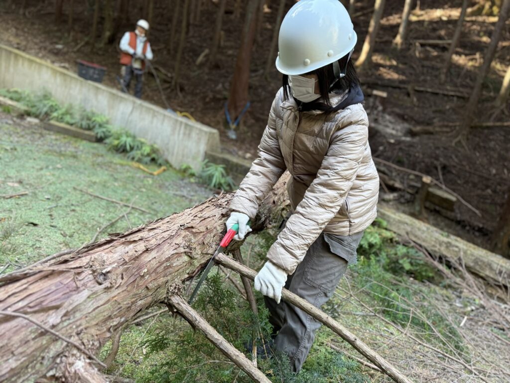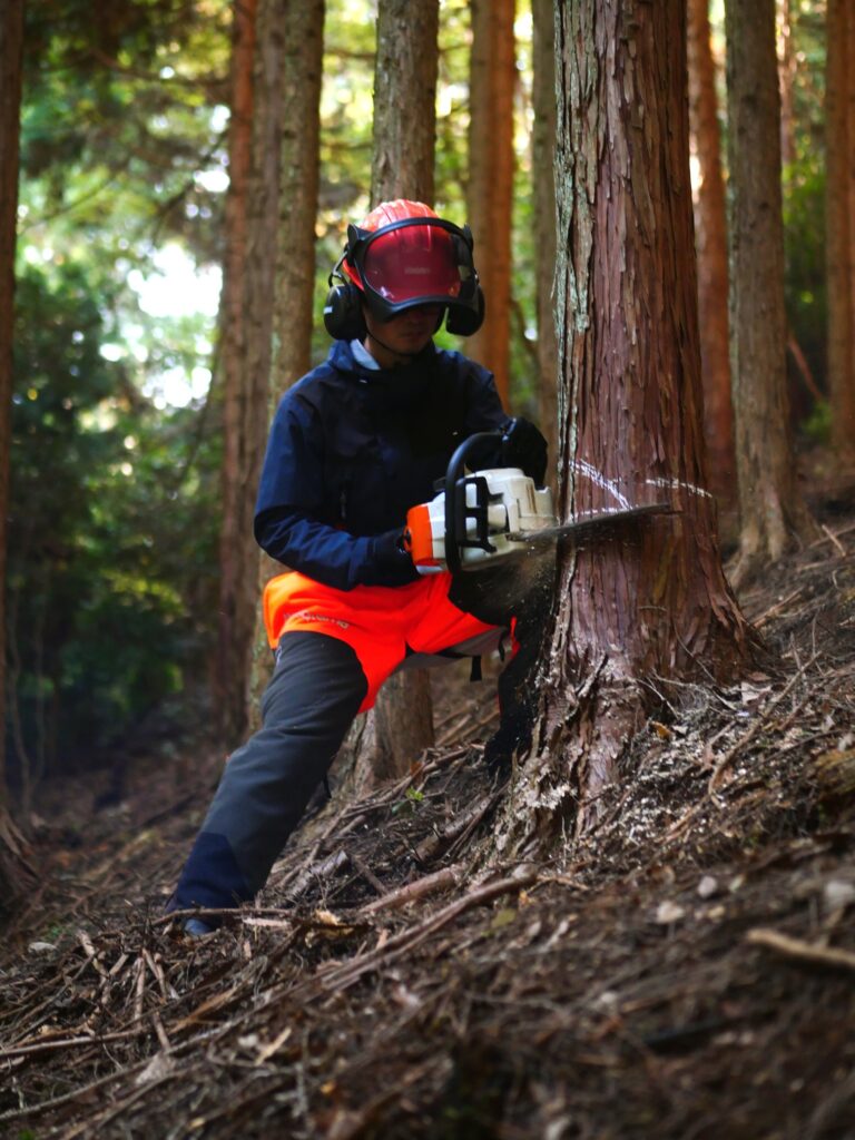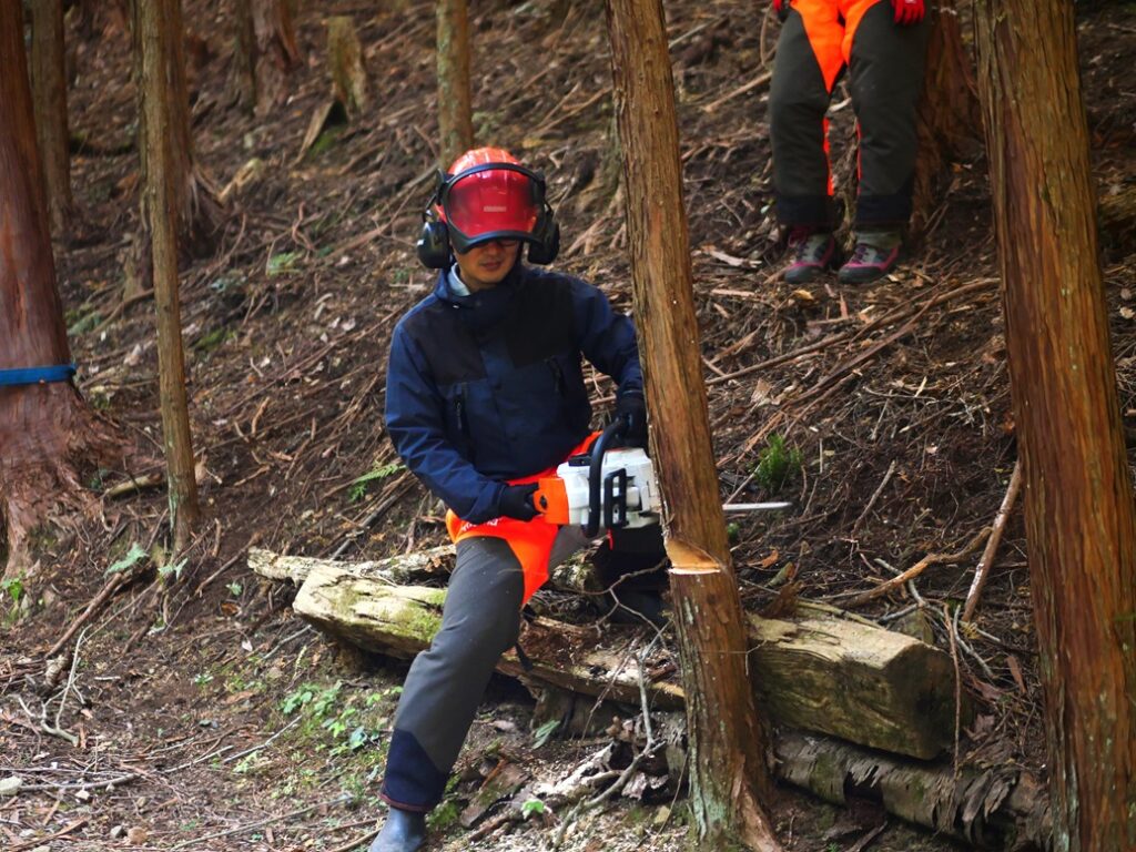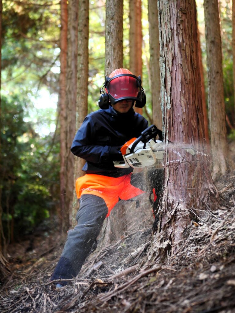 まずは、本日はヒノキを伐採することをお伝えしました。