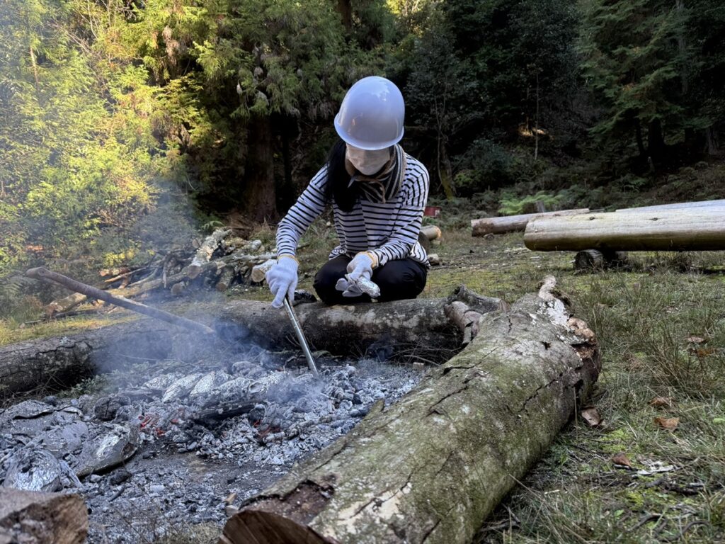 年輪を数え終わったところで、焼き芋タイムです。