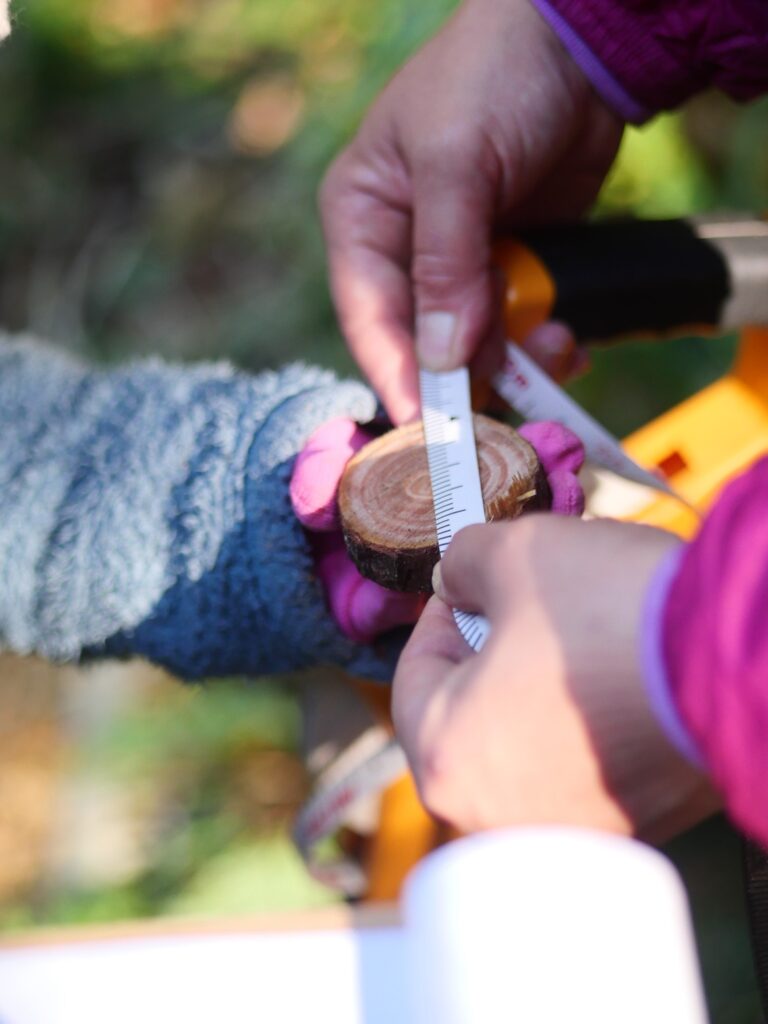 さて、年輪を数えて直径を測っていきます。