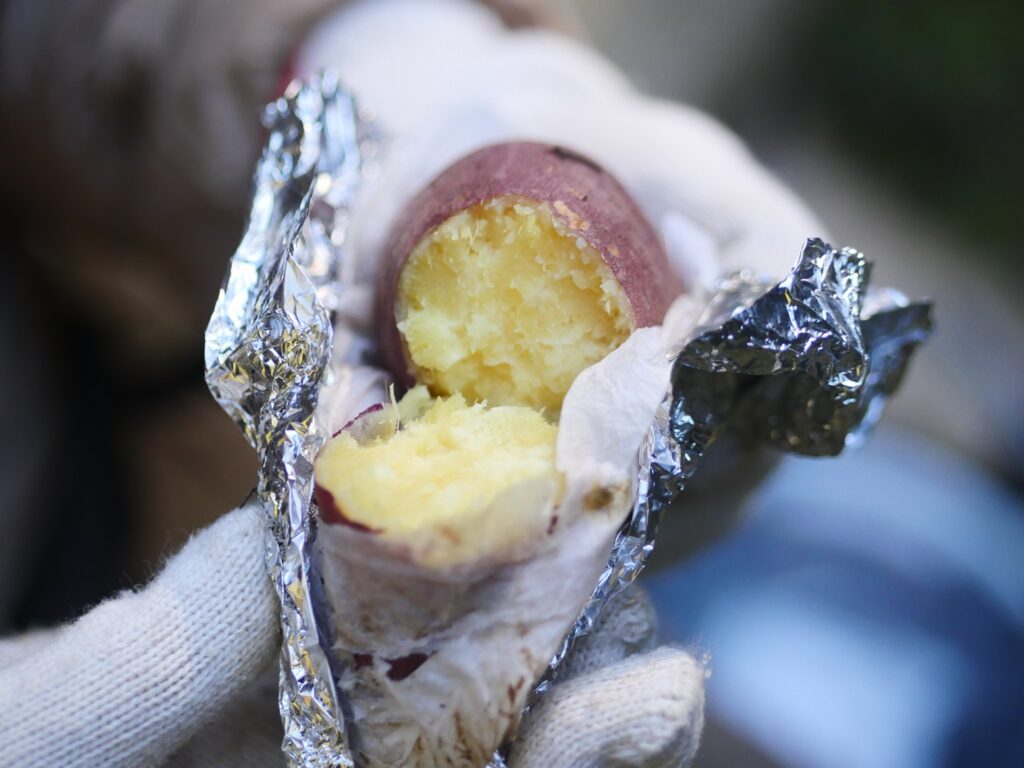 大きいサツマイモは火の通りがいまいちでしたが、このサイズのサツマイモはホクホクに仕上がっていました。